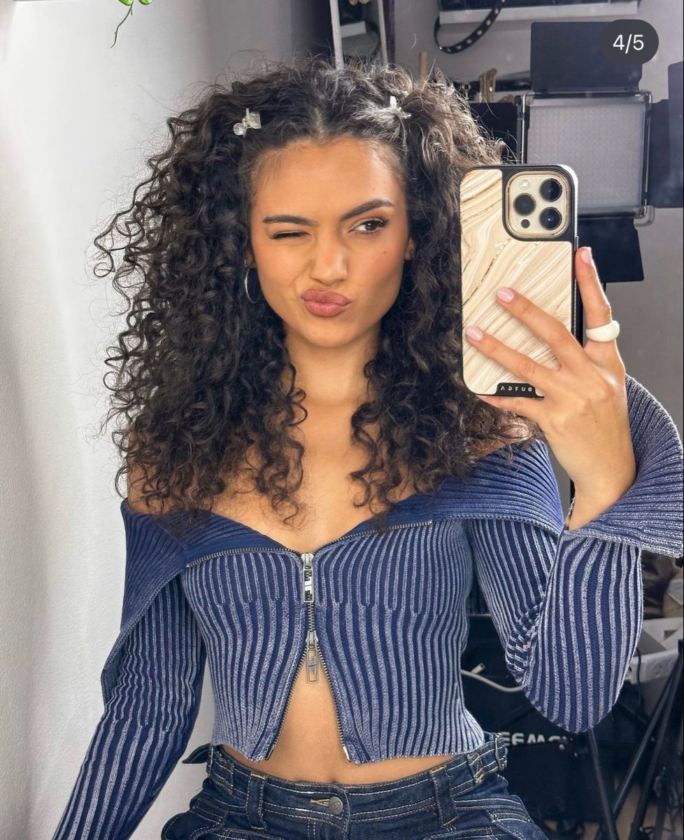 The little clips add such a playful touch and the curls are full and bouncy. It feels effortless but still put together.