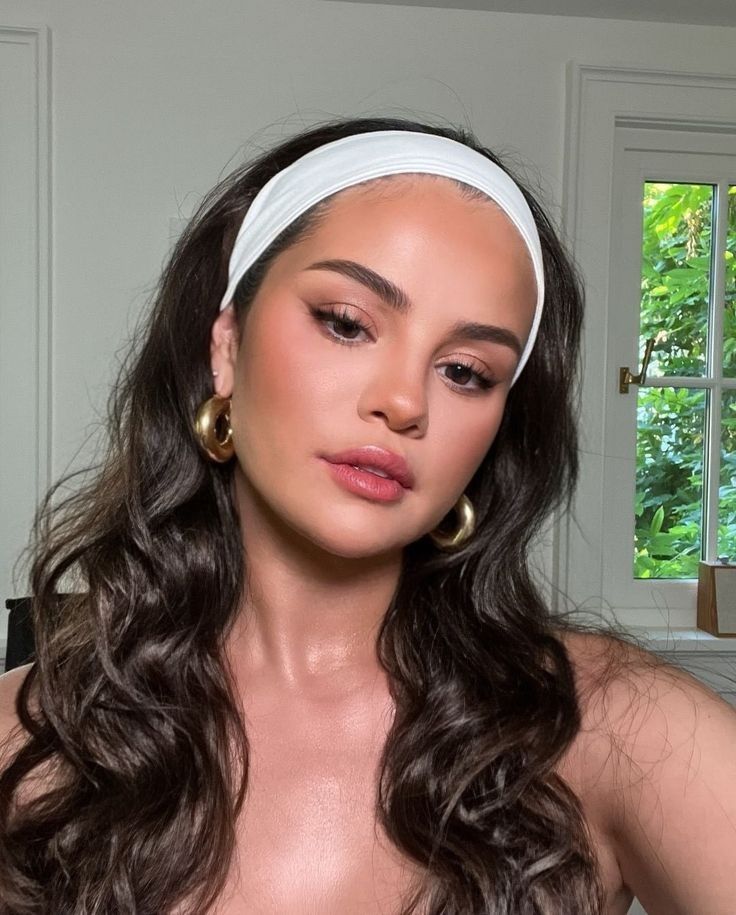 This hairstyle feels so fresh and calm. The waves are loose and shiny and the white headband pulls everything together.