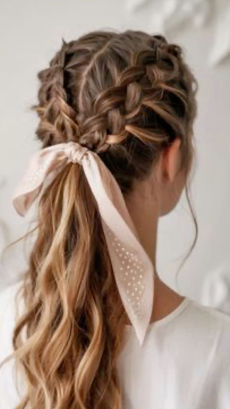 25. Braided Half-Up Pony with Ribbon