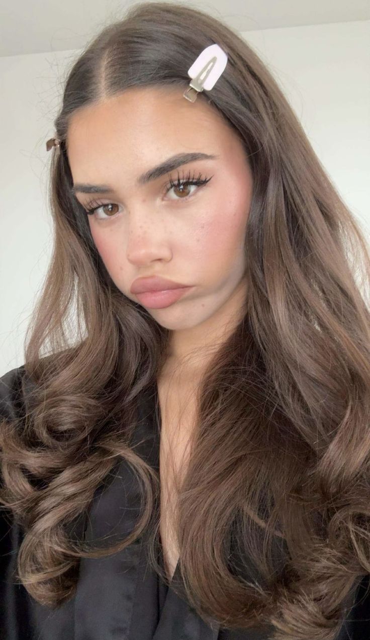 The curls are smooth and shiny and the little clips make it look cute without doing too much. It looks so good on her omg. This is such an easy down hairstyle that still feels special.