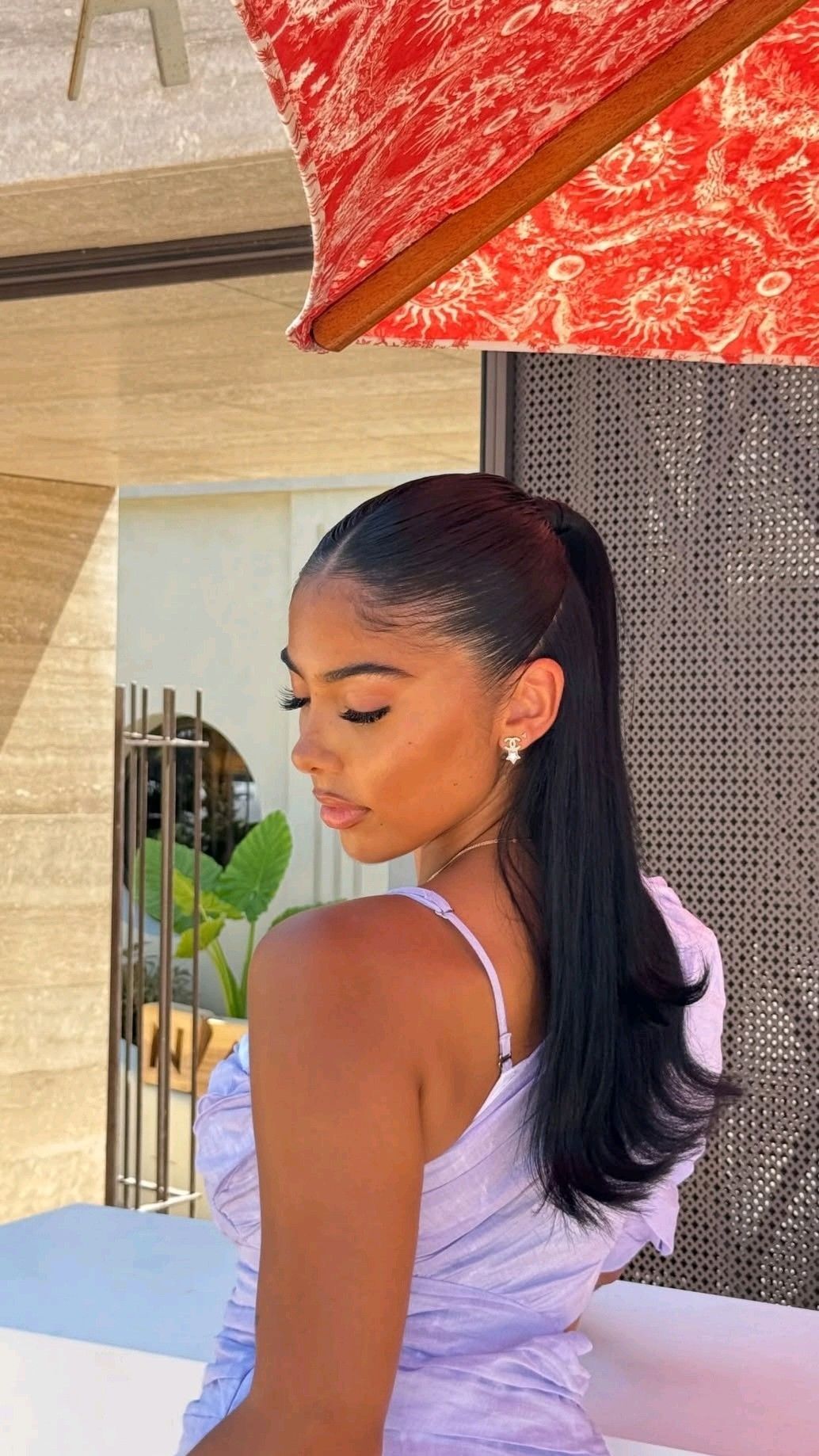 This half up ponytail looks so effortless on her. The waves fall so softly down her back and the volume at the crown is perfect.