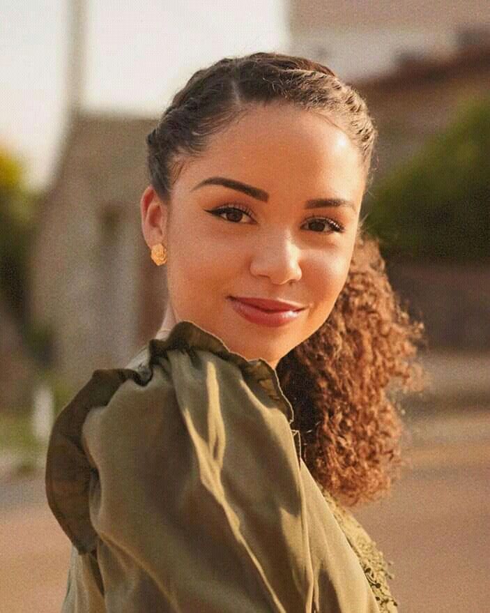 This is elegant in the quietest way. It’s not loud but it speaks. The braided crown detail makes it feel intentional and classy. And those gold earrings with it? Perfect combo. This really suits her, she looks expensive without even trying.
