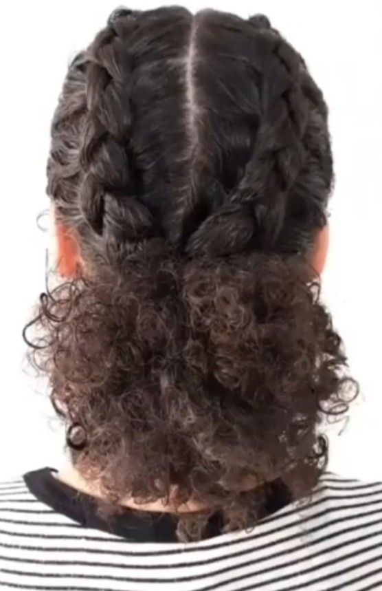 9. Double Braids into Low Curly Puff